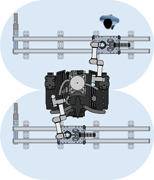 • Large surface areas on the MovoTrak linear carriage act as paddles, allowing for a safeguard stop when contacted.